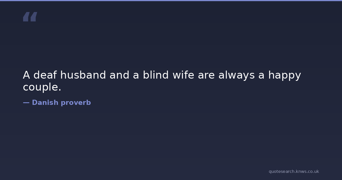 A deaf husband and a blind wife are always a happy couple.
