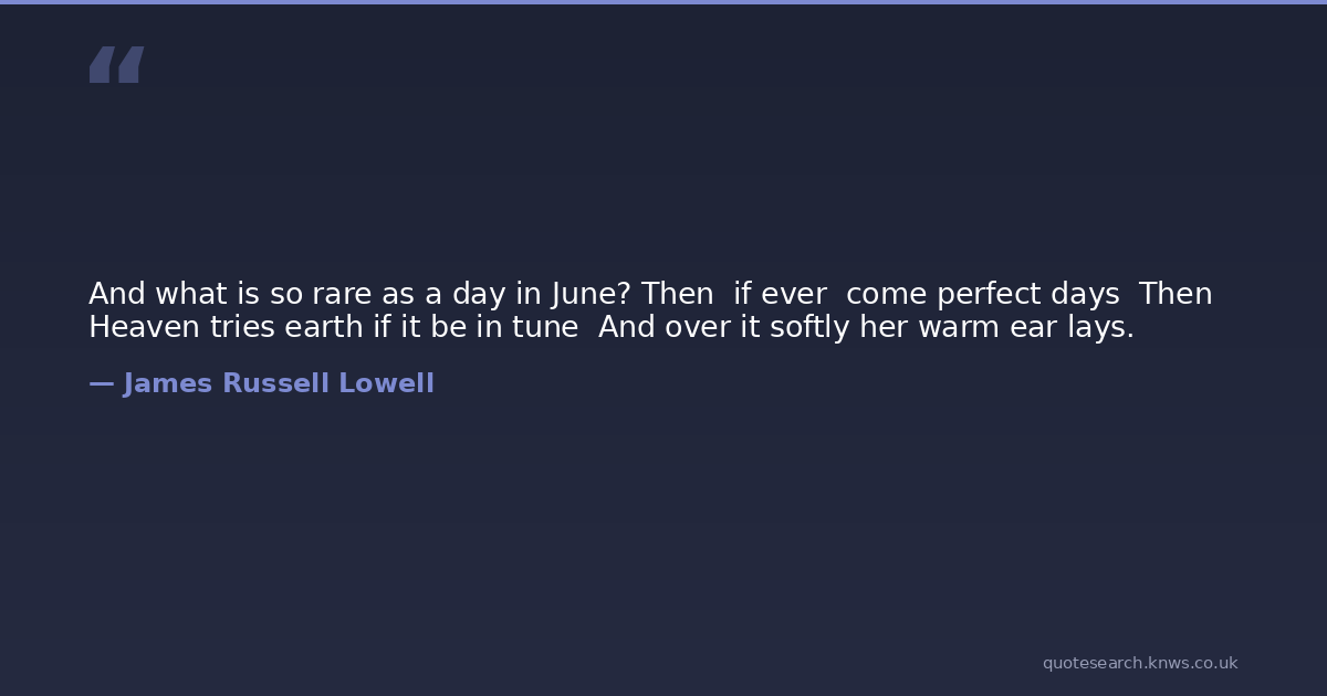 And what is so rare as a day in June? Then if ever come perfect days Then Heaven tries earth if it be in tune And over it softly her warm ear lays.