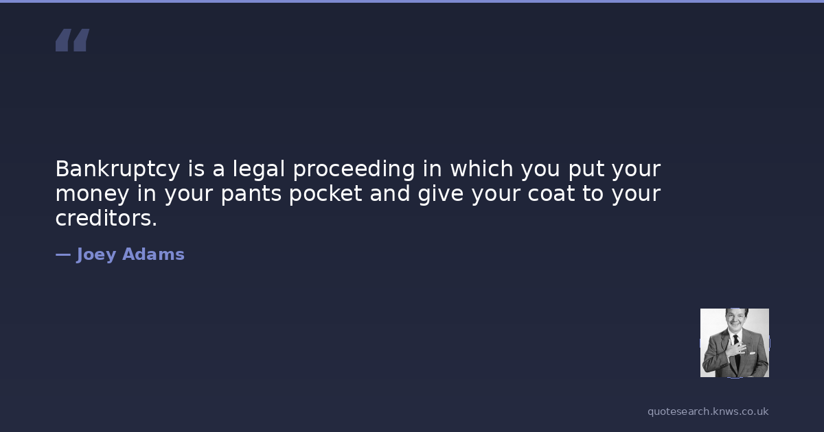 Bankruptcy is a legal proceeding in which you put your money in your pants pocket and give your coat to your creditors.
