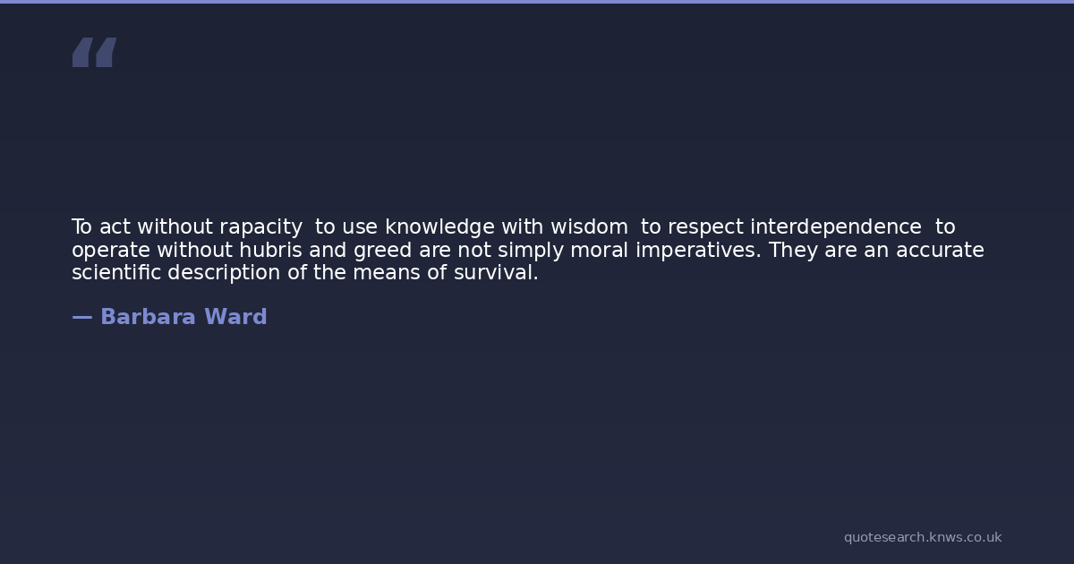To act without rapacity to use knowledge with wisdom to respect interdependence to operate without hubris and greed are not simply moral imperatives. They are an accurate scientific description of the means of survival.