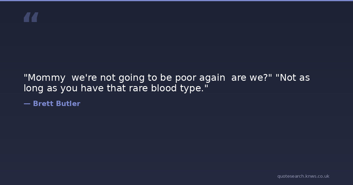 "Mommy we're not going to be poor again are we?" "Not as long as you have that rare blood type."