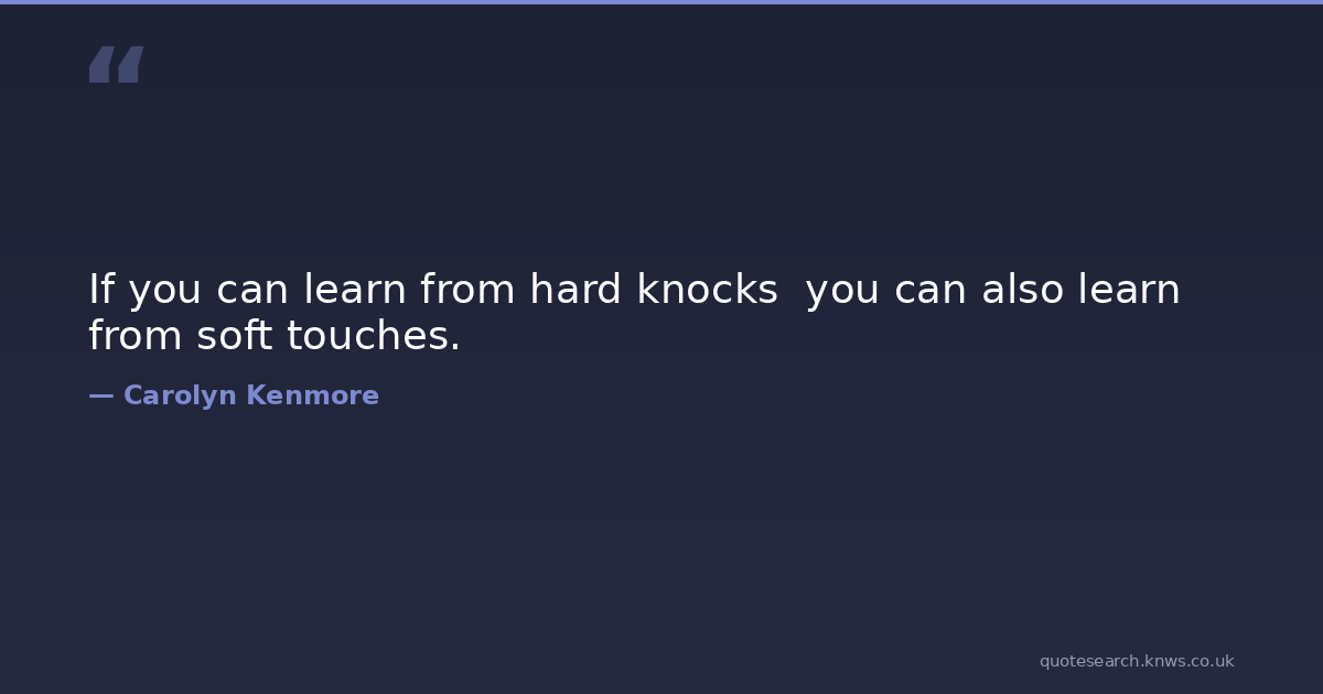 If you can learn from hard knocks you can also learn from soft touches. motivation Download Image Share on X Share on Facebook Copy Link