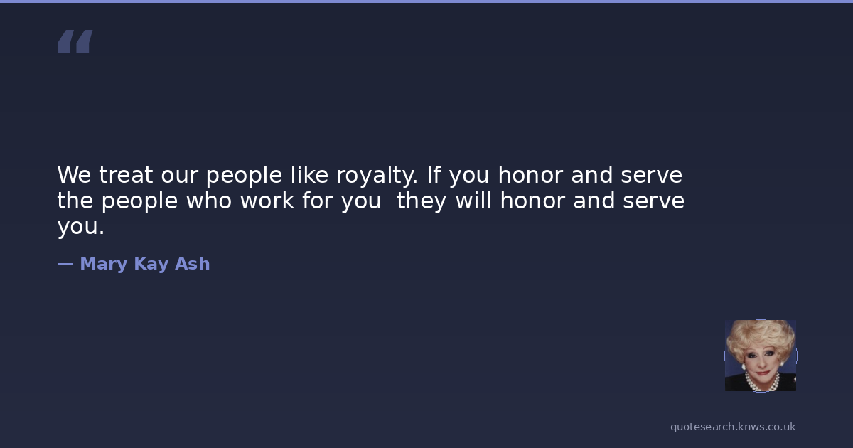 We treat our people like royalty. If you honor and serve the people who work for you they will honor and serve you.