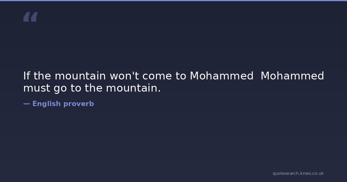 If the mountain won't come to Mohammed Mohammed must go to the mountain. mountain Download Image Share on X Share on Facebook Copy Link