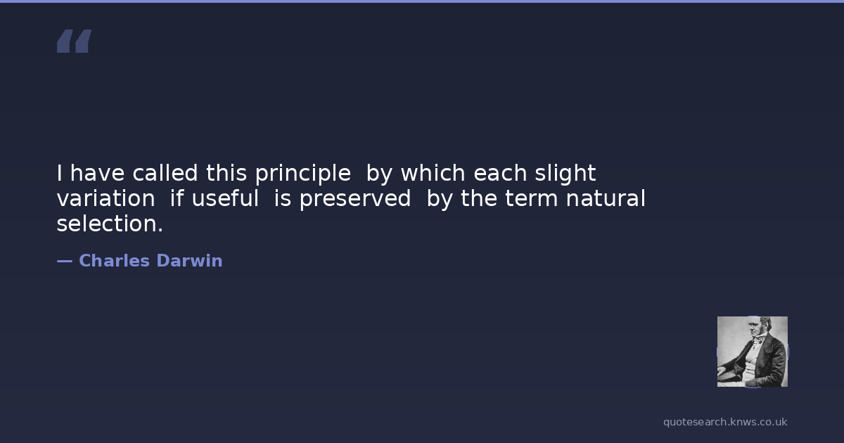 I have called this principle by which each slight variation if useful is preserved by the term natural selection.