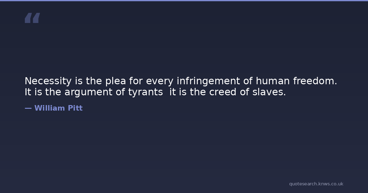 Necessity is the plea for every infringement of human freedom. It is the argument of tyrants it is the creed of slaves.