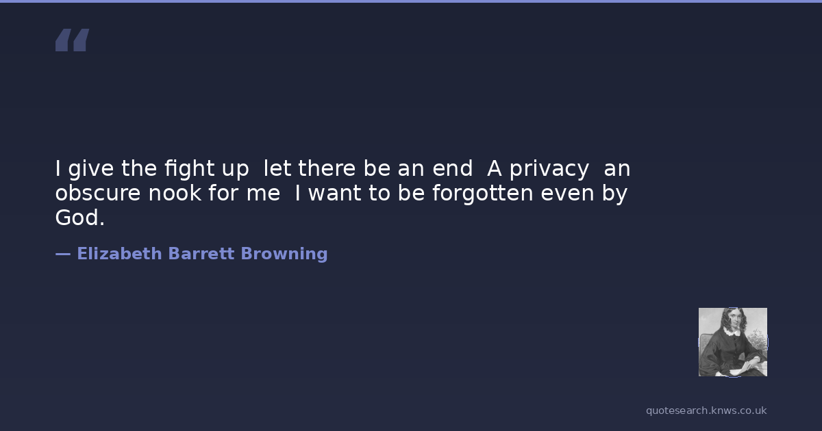 I give the fight up let there be an end A privacy an obscure nook for me I want to be forgotten even by God.