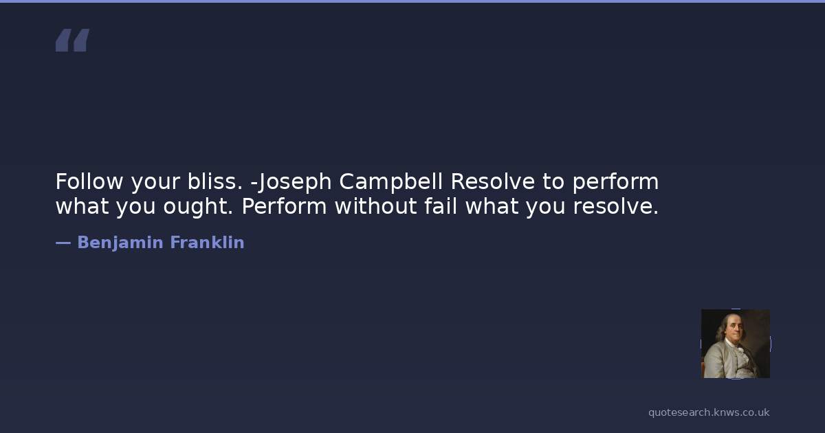 Follow your bliss. -Joseph Campbell Resolve to perform what you ought. Perform without fail what you resolve.