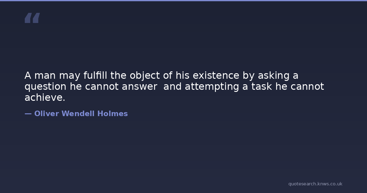 A man may fulfill the object of his existence by asking a question he cannot answer and attempting a task he cannot achieve.