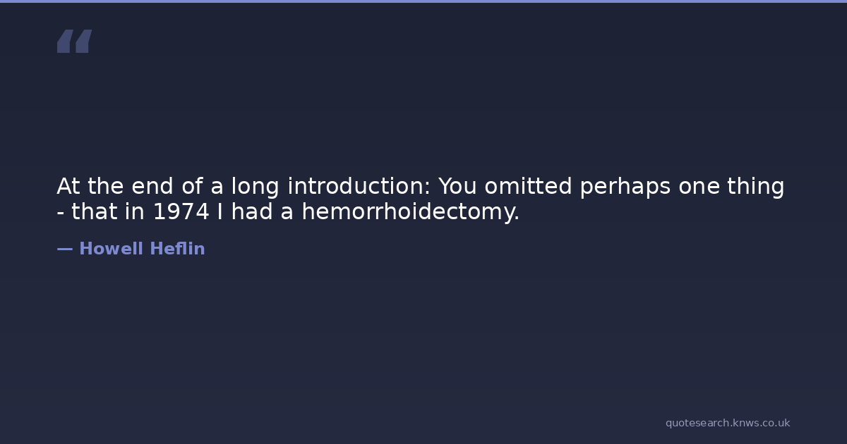 At the end of a long introduction: You omitted perhaps one thing - that in 1974 I had a hemorrhoidectomy. openers introductions Download Image Share on X Share on Facebook Copy Link