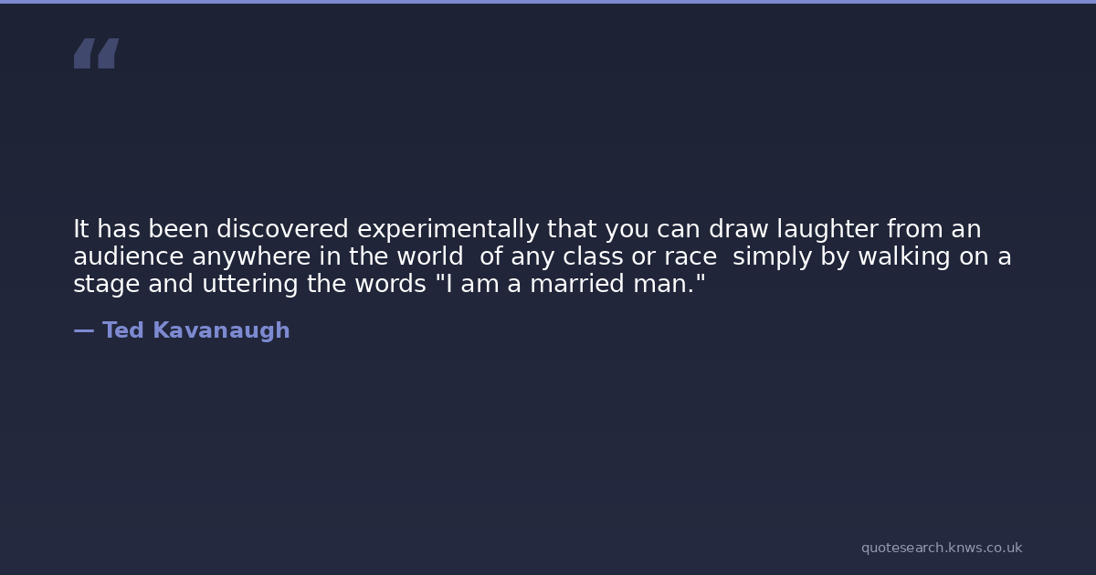 It has been discovered experimentally that you can draw laughter from an audience anywhere in the world of any class or race simply by walking on a stage and uttering the words "I am a married man."
