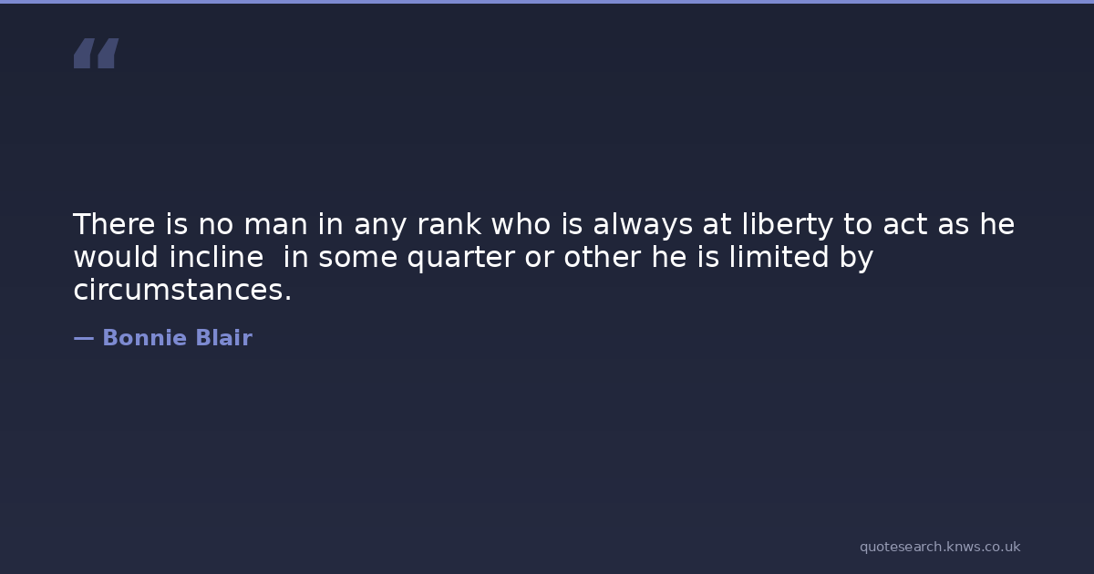 There is no man in any rank who is always at liberty to act as he would incline in some quarter or other he is limited by circumstances.