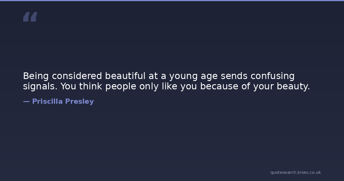 Being considered beautiful at a young age sends confusing signals. You think people only like you because of your beauty. side Download Image Share on X Share on Facebook Copy Link