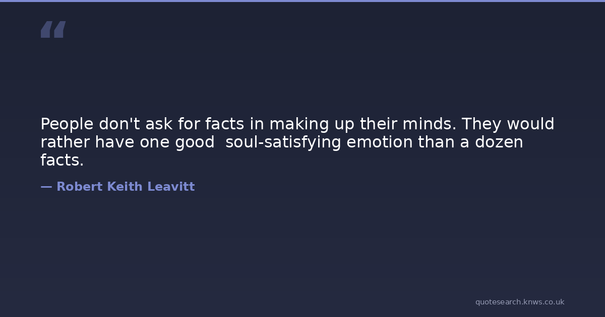 People don't ask for facts in making up their minds. They would rather have one good soul-satisfying emotion than a dozen facts.