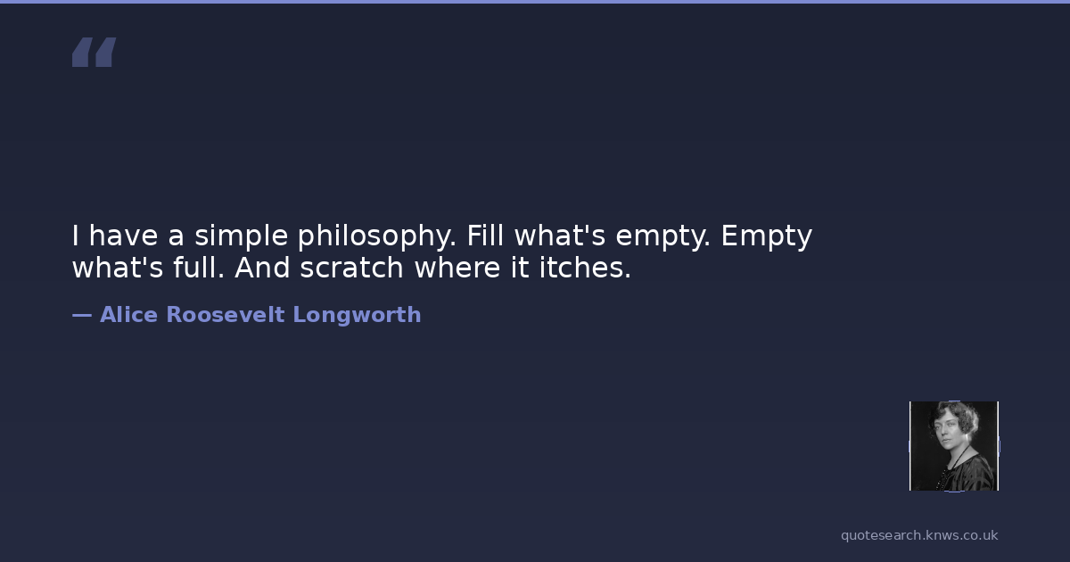 I have a simple philosophy. Fill what's empty. Empty what's full. And scratch where it itches.