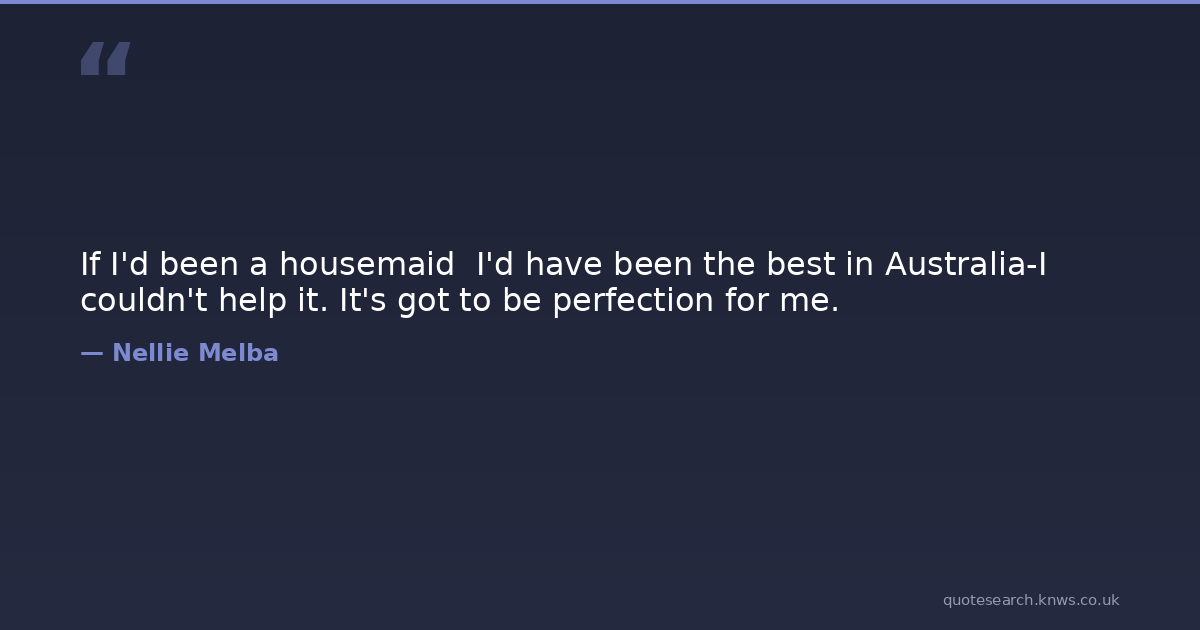 If I'd been a housemaid I'd have been the best in Australia-I couldn't help it. It's got to be perfection for me. perfection Download Image Share on X Share on Facebook Copy Link