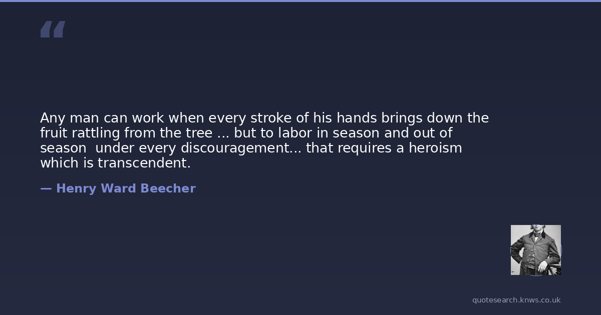 Any man can work when every stroke of his hands brings down the fruit rattling from the tree ... but to labor in season and out of season under every discouragement... that requires a heroism which is transcendent.