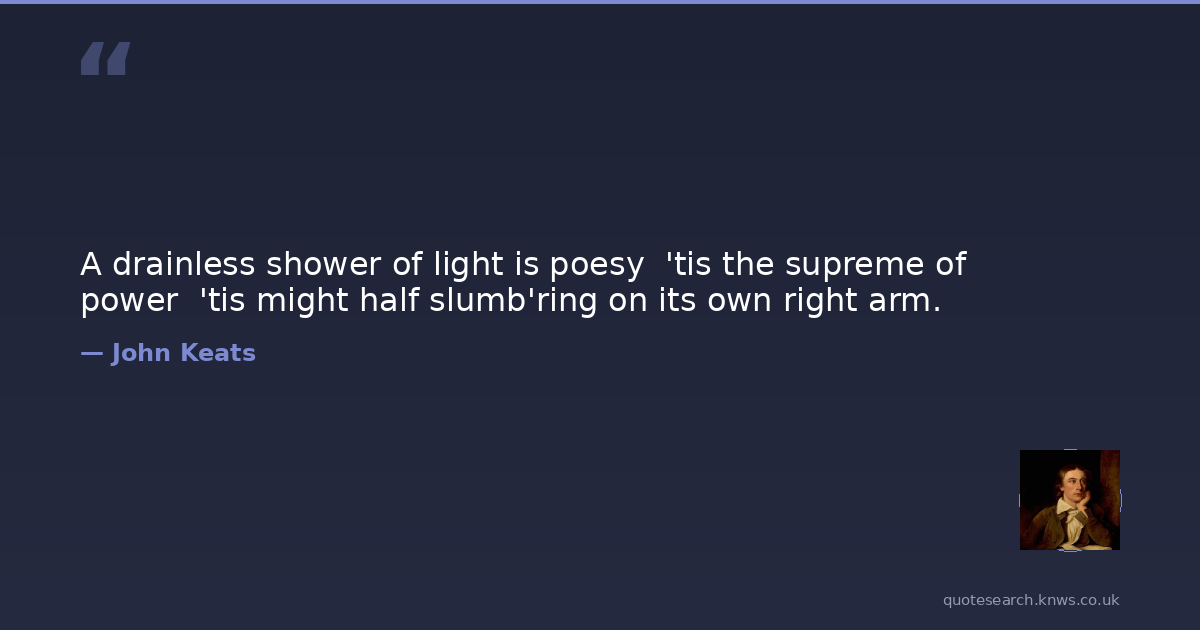 A drainless shower of light is poesy 'tis the supreme of power 'tis might half slumb'ring on its own right arm.