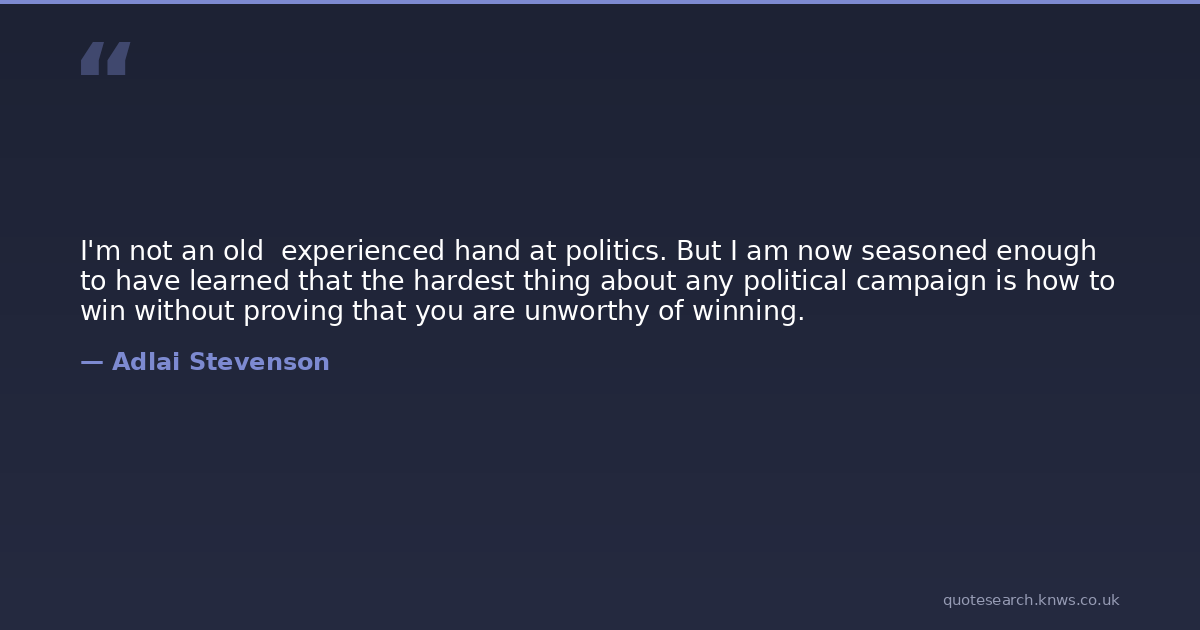 I'm not an old experienced hand at politics. But I am now seasoned enough to have learned that the hardest thing about any political campaign is how to win without proving that you are unworthy of winning.