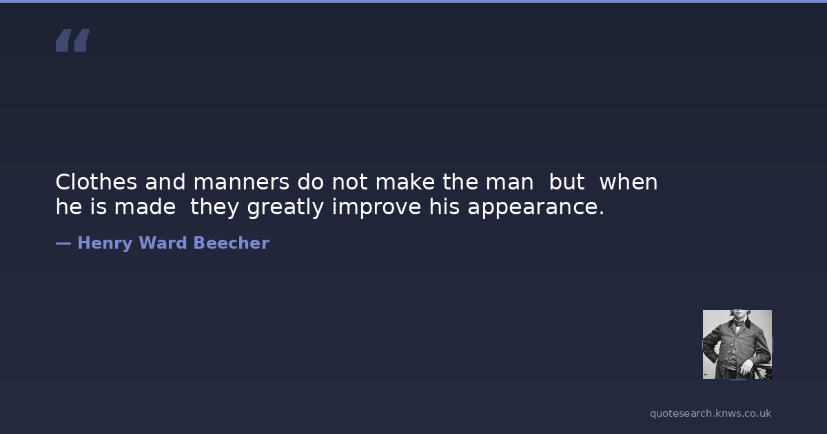 Clothes and manners do not make the man but when he is made they greatly improve his appearance.