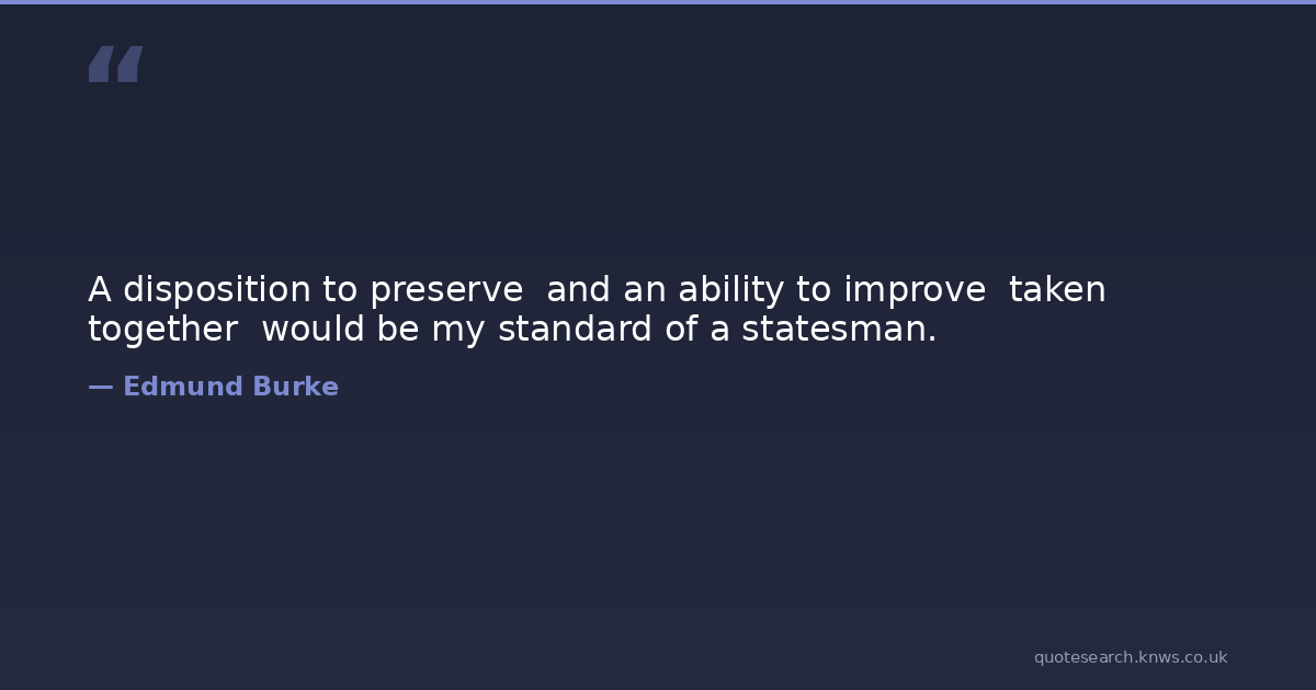 A disposition to preserve and an ability to improve taken together would be my standard of a statesman.