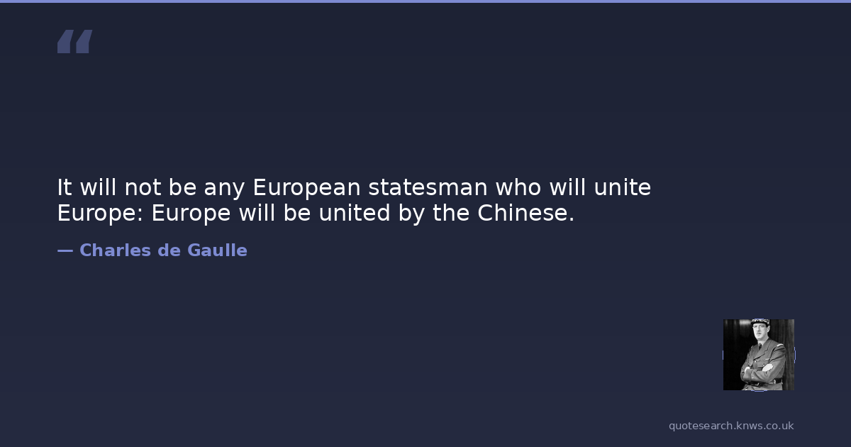 It will not be any European statesman who will unite Europe: Europe will be united by the Chinese.