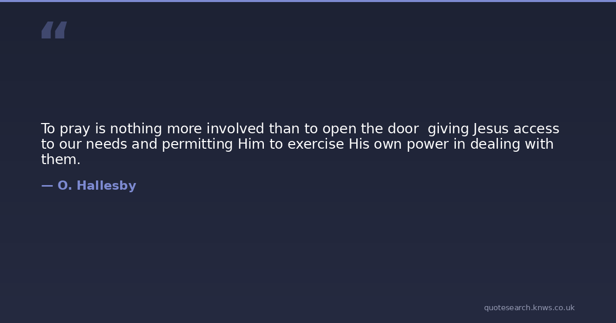 To pray is nothing more involved than to open the door giving Jesus access to our needs and permitting Him to exercise His own power in dealing with them.