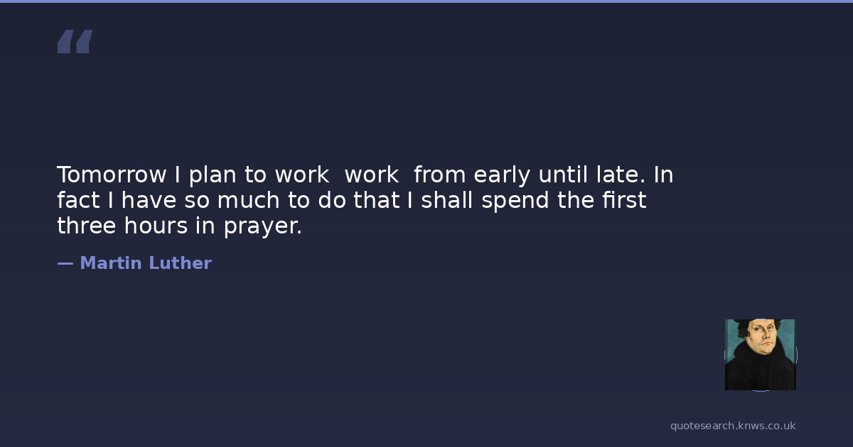 Tomorrow I plan to work work from early until late. In fact I have so much to do that I shall spend the first three hours in prayer.