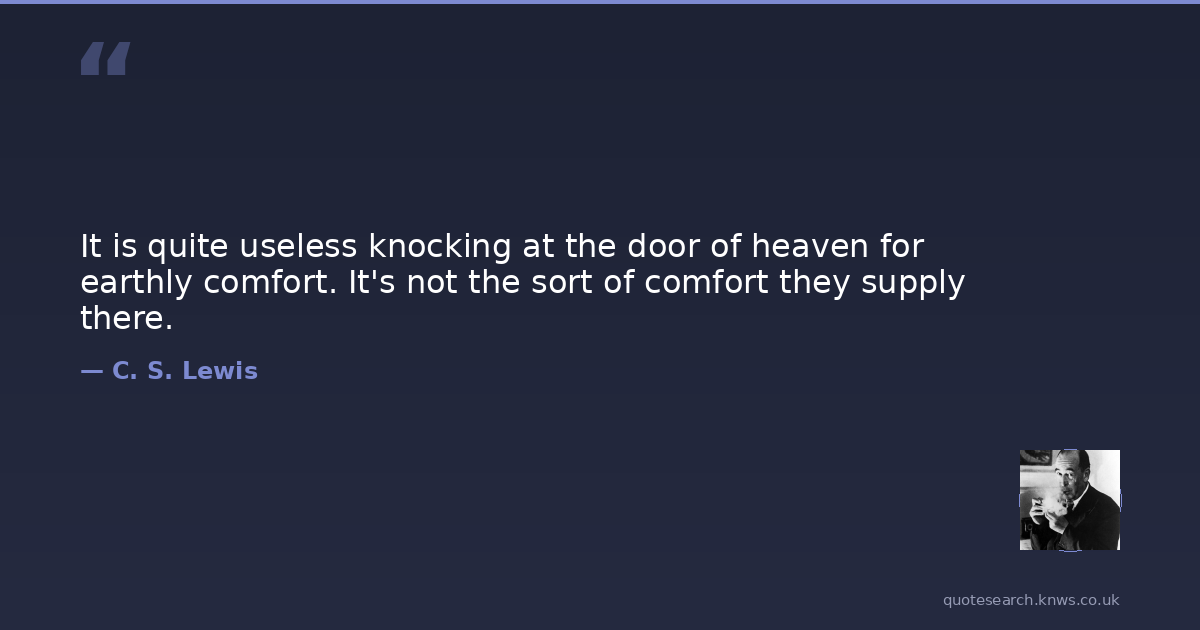 It is quite useless knocking at the door of heaven for earthly comfort. It's not the sort of comfort they supply there.