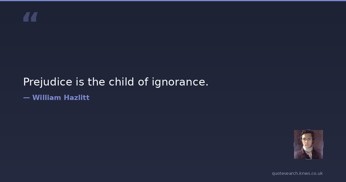 Prejudice is the child of ignorance.