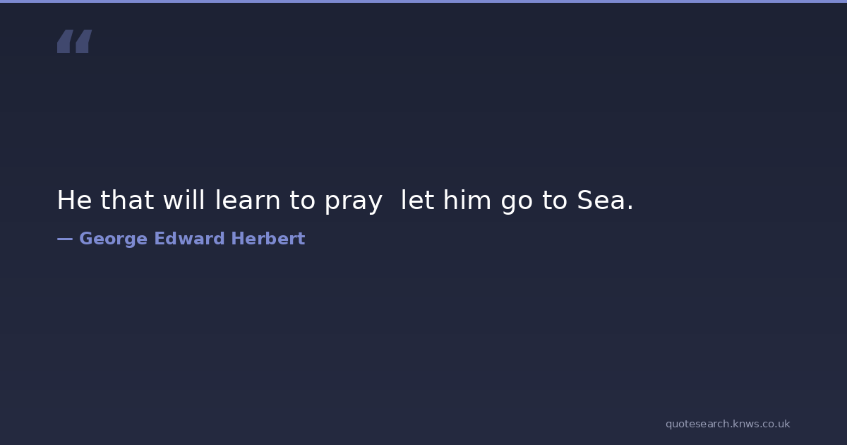 He that will learn to pray let him go to Sea. prayer Download Image Share on X Share on Facebook Copy Link