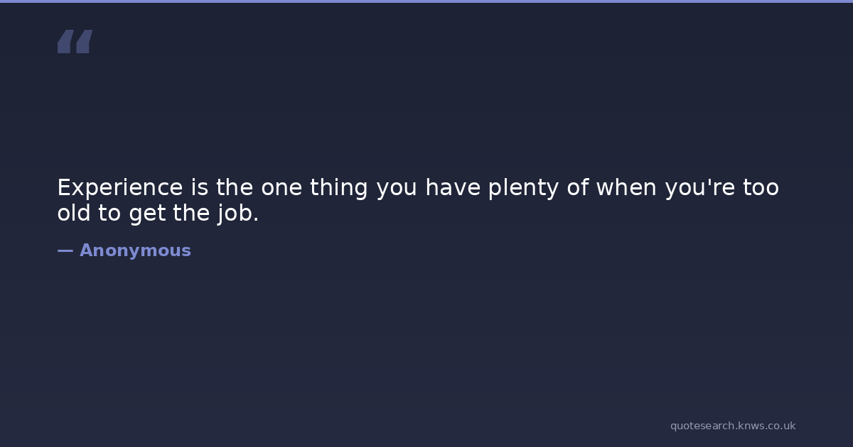 Experience is the one thing you have plenty of when you're too old to get the job.