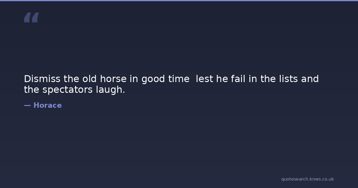 Dismiss the old horse in good time lest he fail in the lists and the spectators laugh.