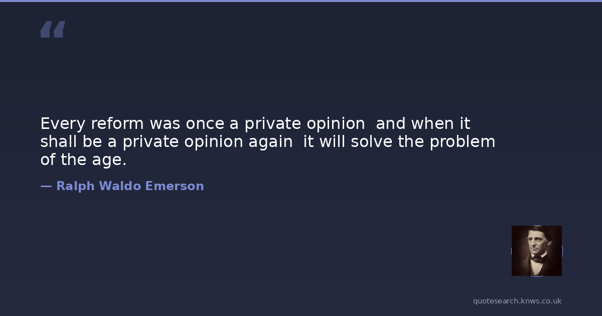 Every reform was once a private opinion and when it shall be a private opinion again it will solve the problem of the age.
