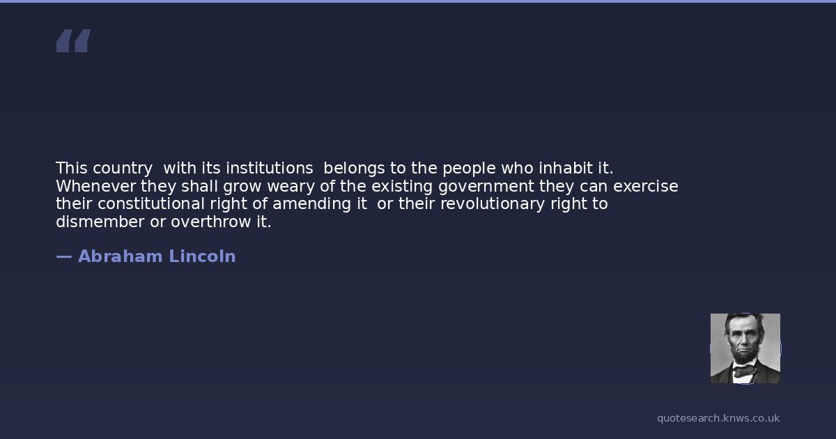 This country with its institutions belongs to the people who inhabit it. Whenever they shall grow weary of the existing government they can exercise their constitutional right of amending it or their revolutionary right to dismember or overthrow it.