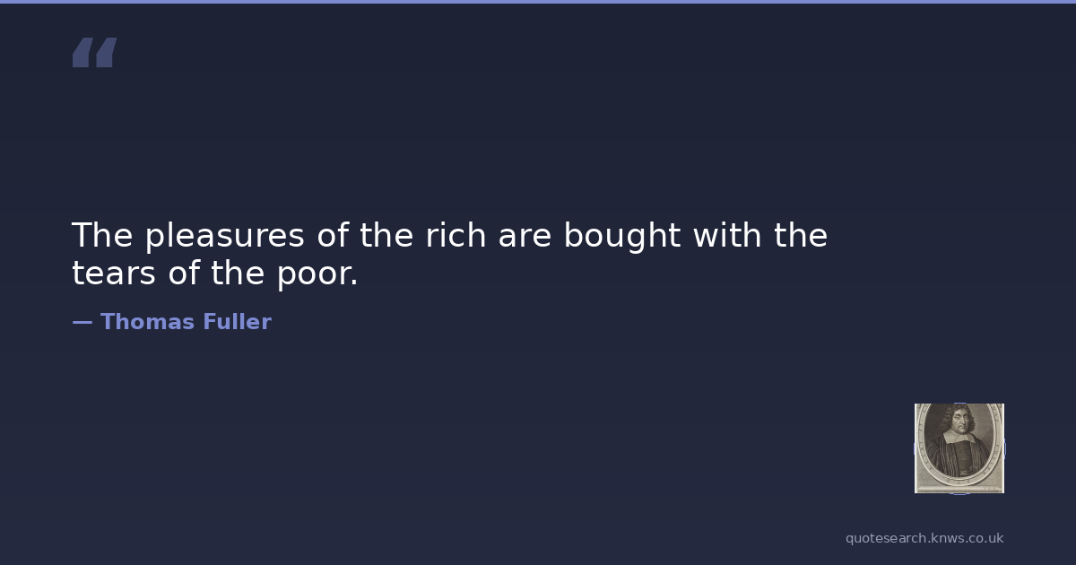 The pleasures of the rich are bought with the tears of the poor.