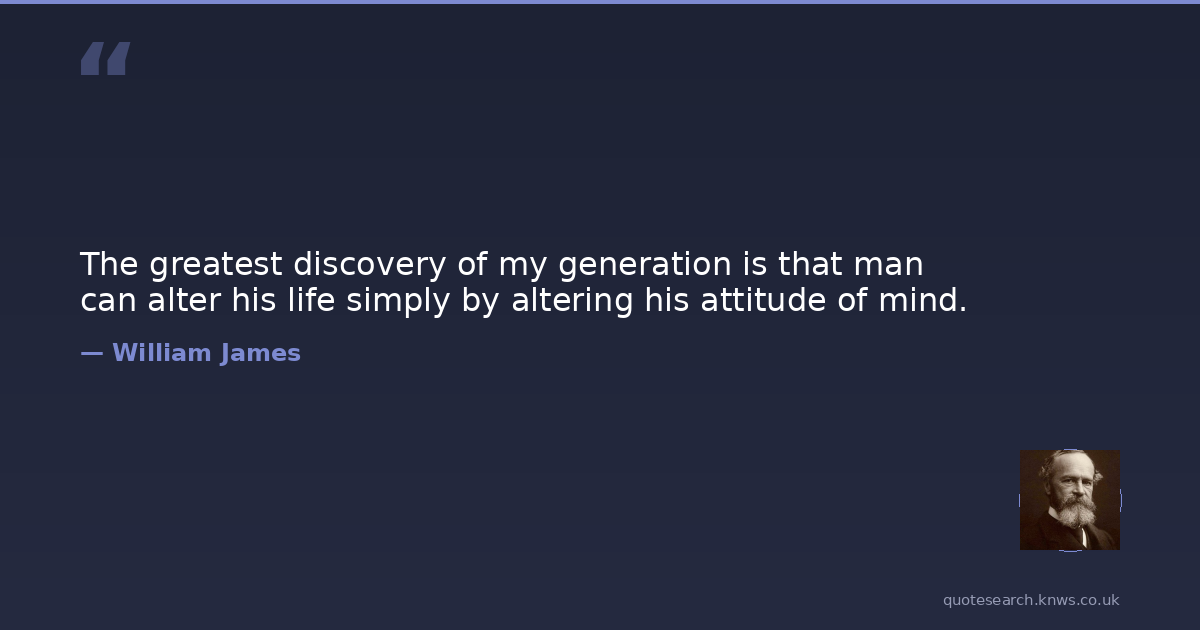 The greatest discovery of my generation is that man can alter his life simply by altering his attitude of mind.