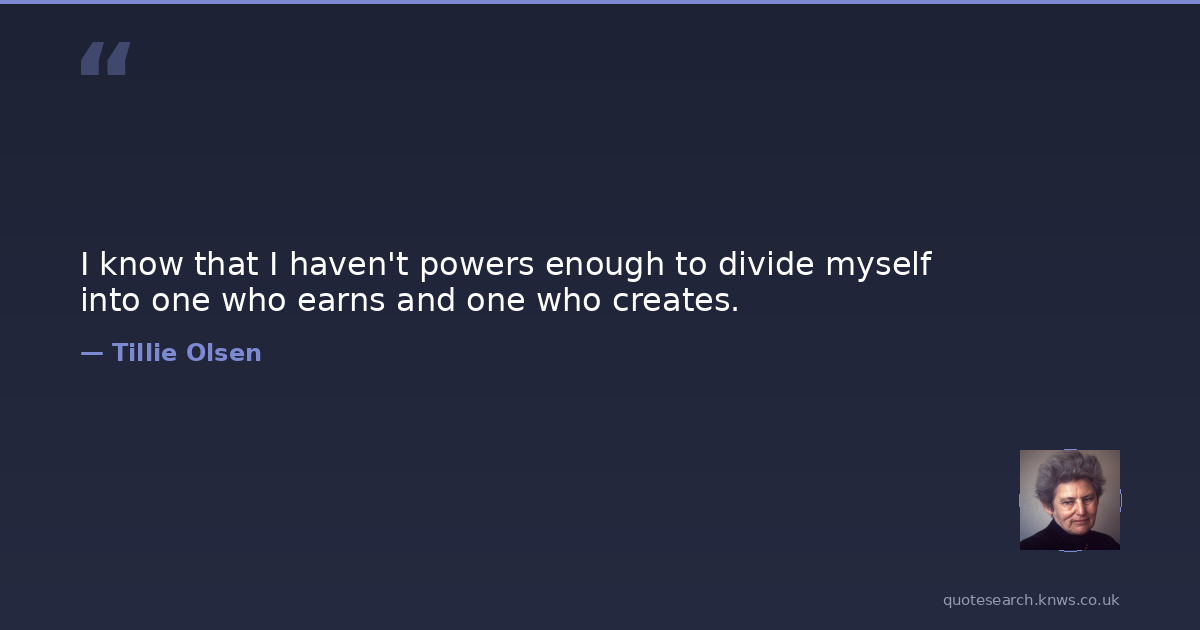 I know that I haven't powers enough to divide myself into one who earns and one who creates.