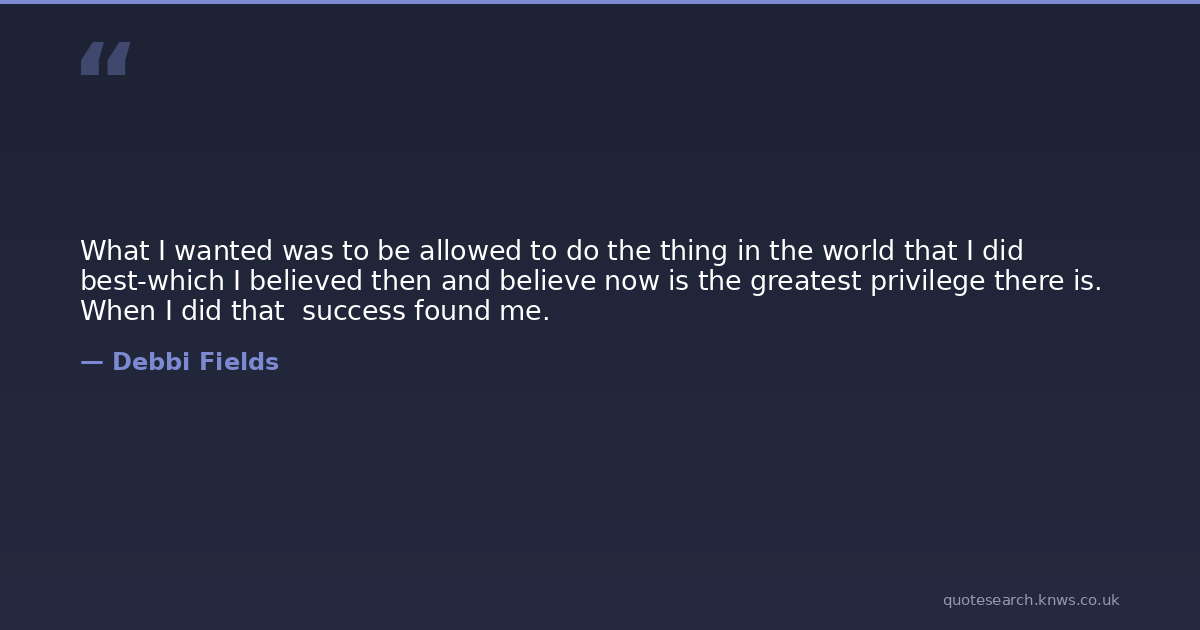 What I wanted was to be allowed to do the thing in the world that I did best-which I believed then and believe now is the greatest privilege there is. When I did that success found me.