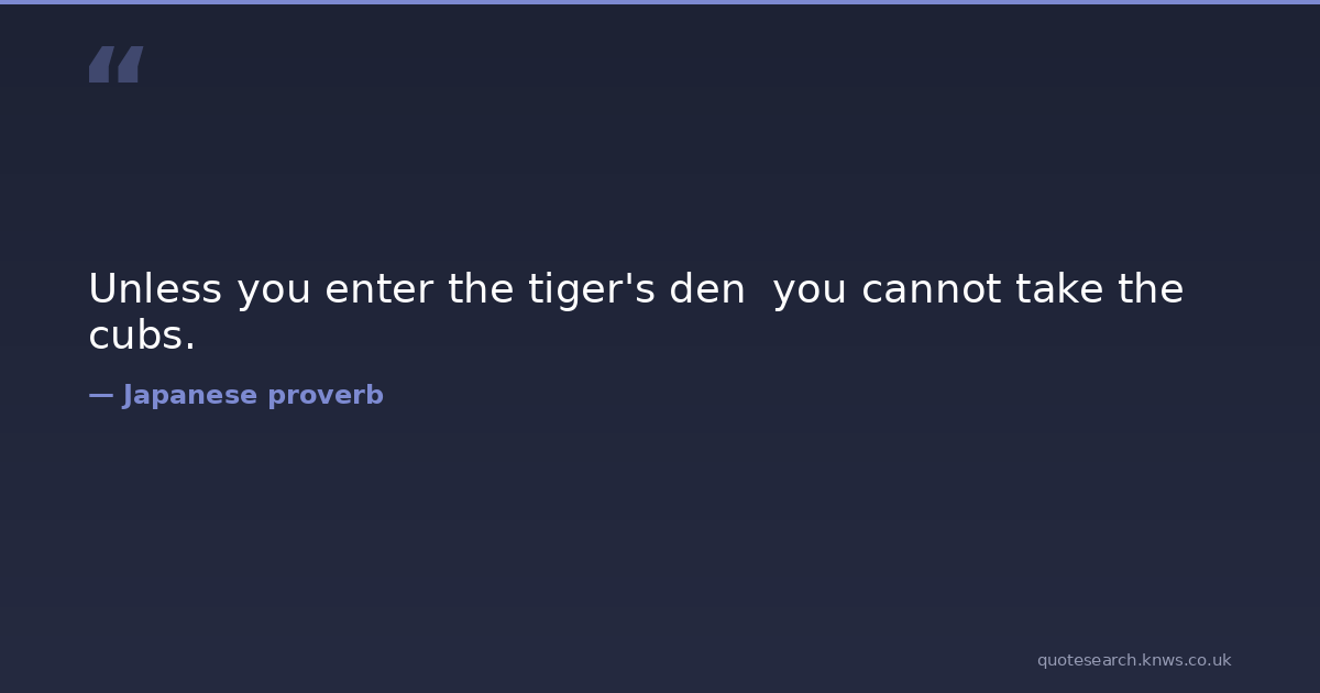 Unless you enter the tiger's den you cannot take the cubs. risks Download Image Share on X Share on Facebook Copy Link