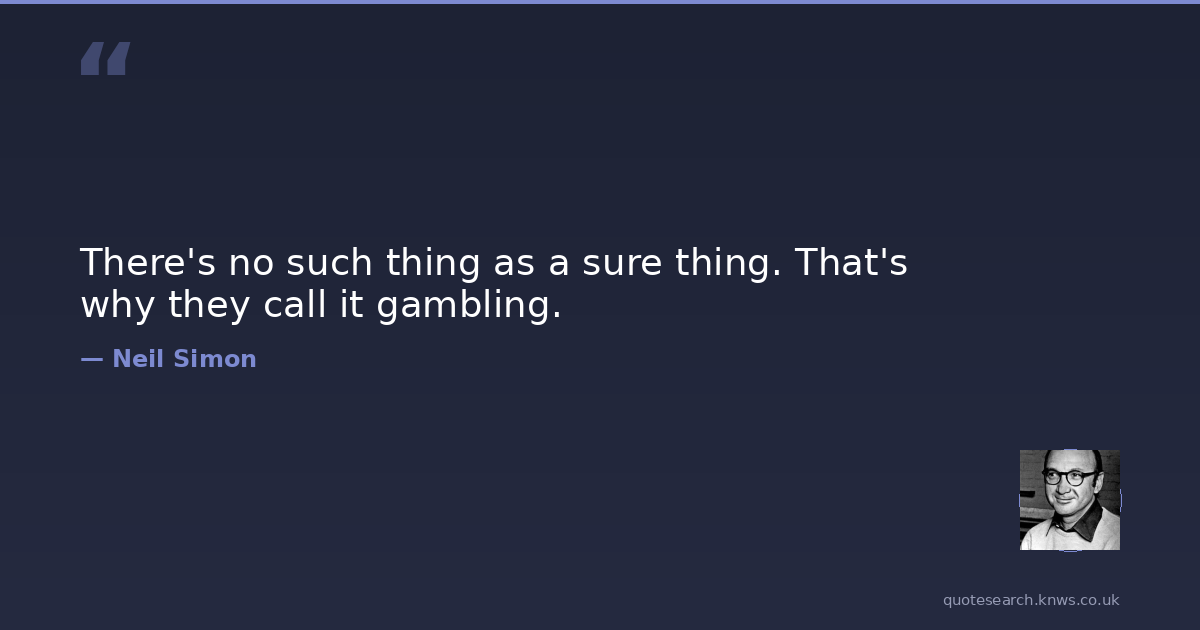 There's no such thing as a sure thing. That's why they call it gambling.