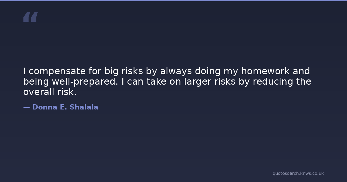 I compensate for big risks by always doing my homework and being well-prepared. I can take on larger risks by reducing the overall risk.