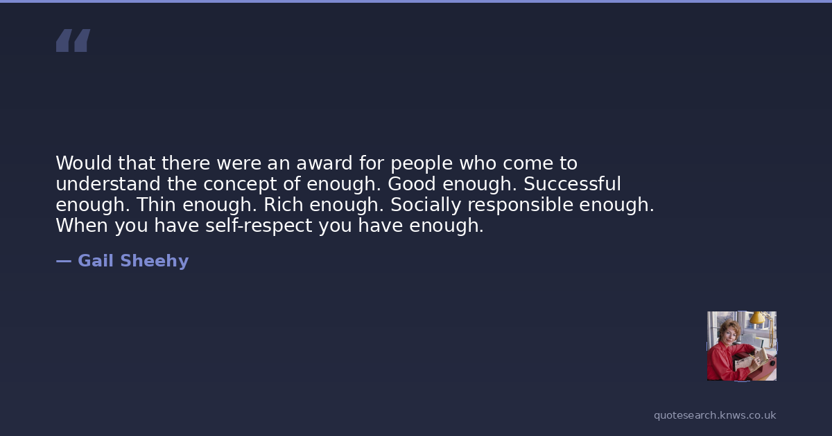 Would that there were an award for people who come to understand the concept of enough. Good enough. Successful enough. Thin enough. Rich enough. Socially responsible enough. When you have self-respect you have enough.