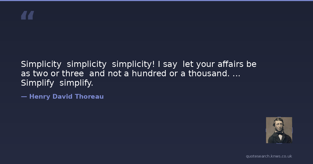 Simplicity simplicity simplicity! I say let your affairs be as two or three and not a hundred or a thousand. ... Simplify simplify.