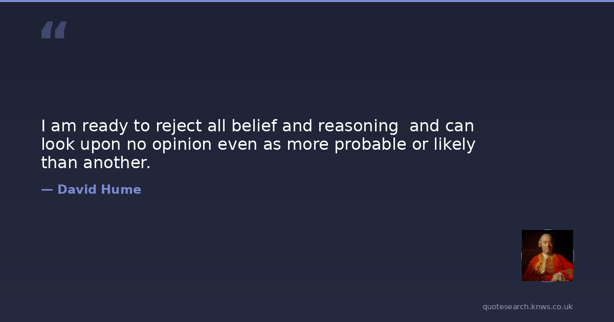 I am ready to reject all belief and reasoning and can look upon no opinion even as more probable or likely than another.