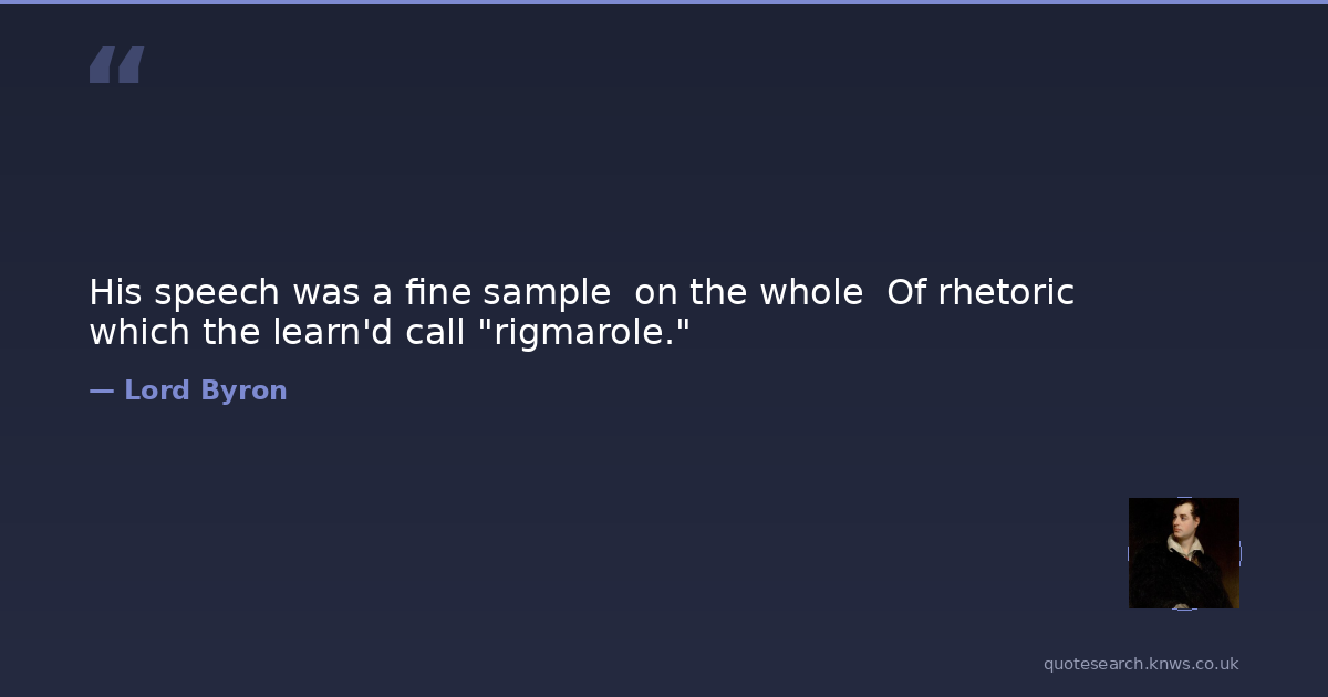 His speech was a fine sample on the whole Of rhetoric which the learn'd call "rigmarole."