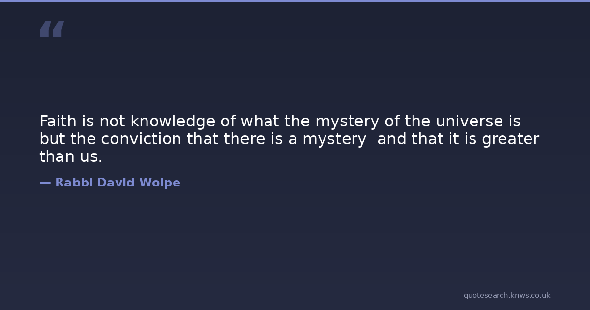 Faith is not knowledge of what the mystery of the universe is but the conviction that there is a mystery and that it is greater than us.