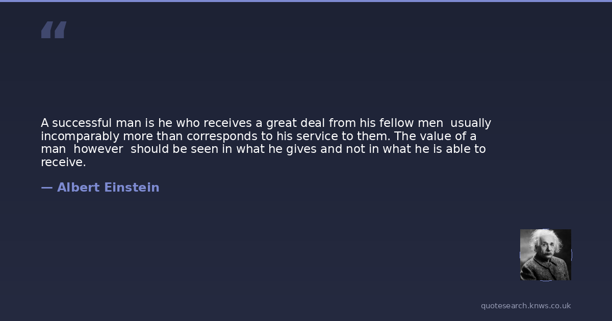 A successful man is he who receives a great deal from his fellow men usually incomparably more than corresponds to his service to them. The value of a man however should be seen in what he gives and not in what he is able to receive.