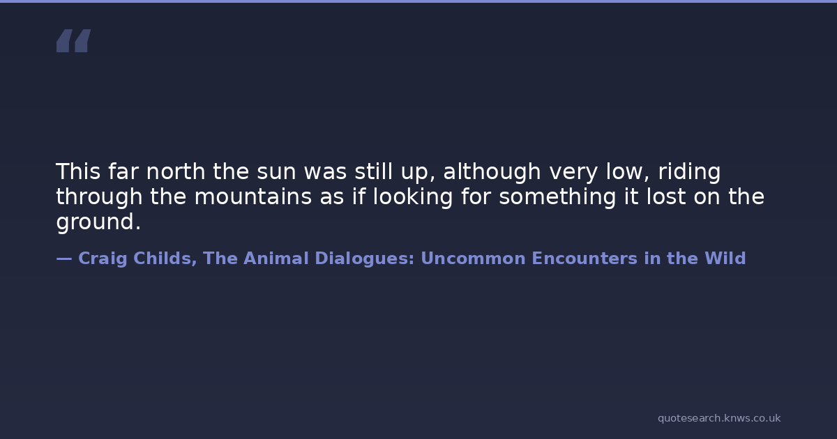 This far north the sun was still up, although very low, riding through the mountains as if looking for something it lost on the ground.