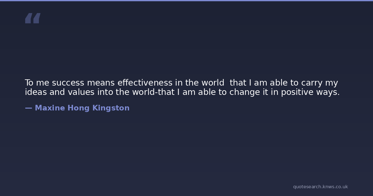 To me success means effectiveness in the world that I am able to carry my ideas and values into the world-that I am able to change it in positive ways.